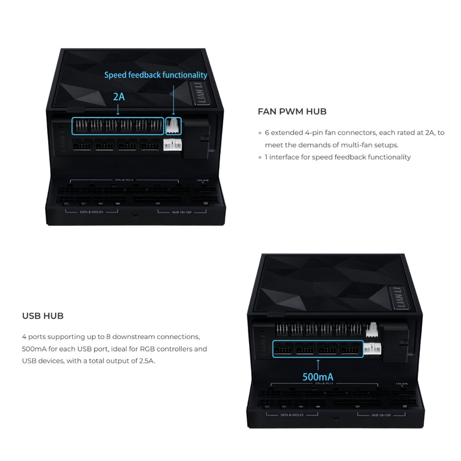 Lian Li EG-HUB01W White Detachable PSU USB & Fan Hub - for Edge Gold - LIAN LI 2.35.65.02.018