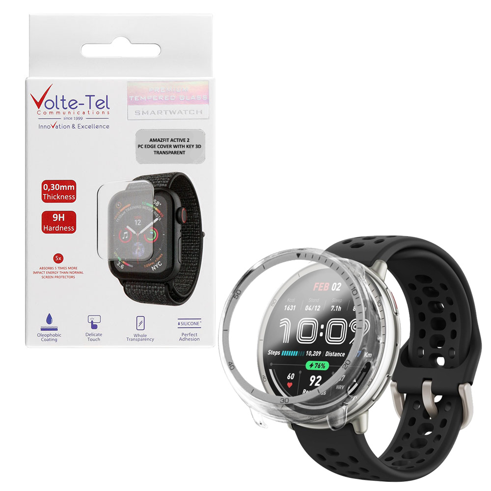VOLTE-TEL TEMPERED GLASS AMAZFIT ACTIVE 2 1.32" 9H 0.30mm PC EDGE COVER WITH KEY 3D FULL GLUE FULL COVER TRANSPARENT
