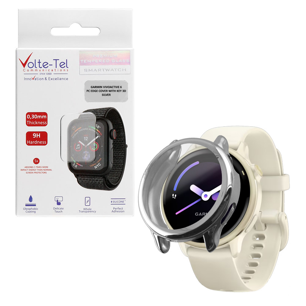 VOLTE-TEL TEMPERED GLASS GARMIN VIVOACTIVE 6 1.2" 9H 0.30mm PC EDGE COVER WITH KEY 3D FULL GLUE FULL COVER SILVER