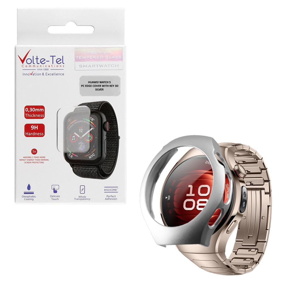 VOLTE-TEL TEMPERED GLASS HUAWEI WATCH 5 46mm 1.5" 9H 0.30mm PC EDGE COVER WITH KEY 3D FULL GLUE FULL COVER SILVER