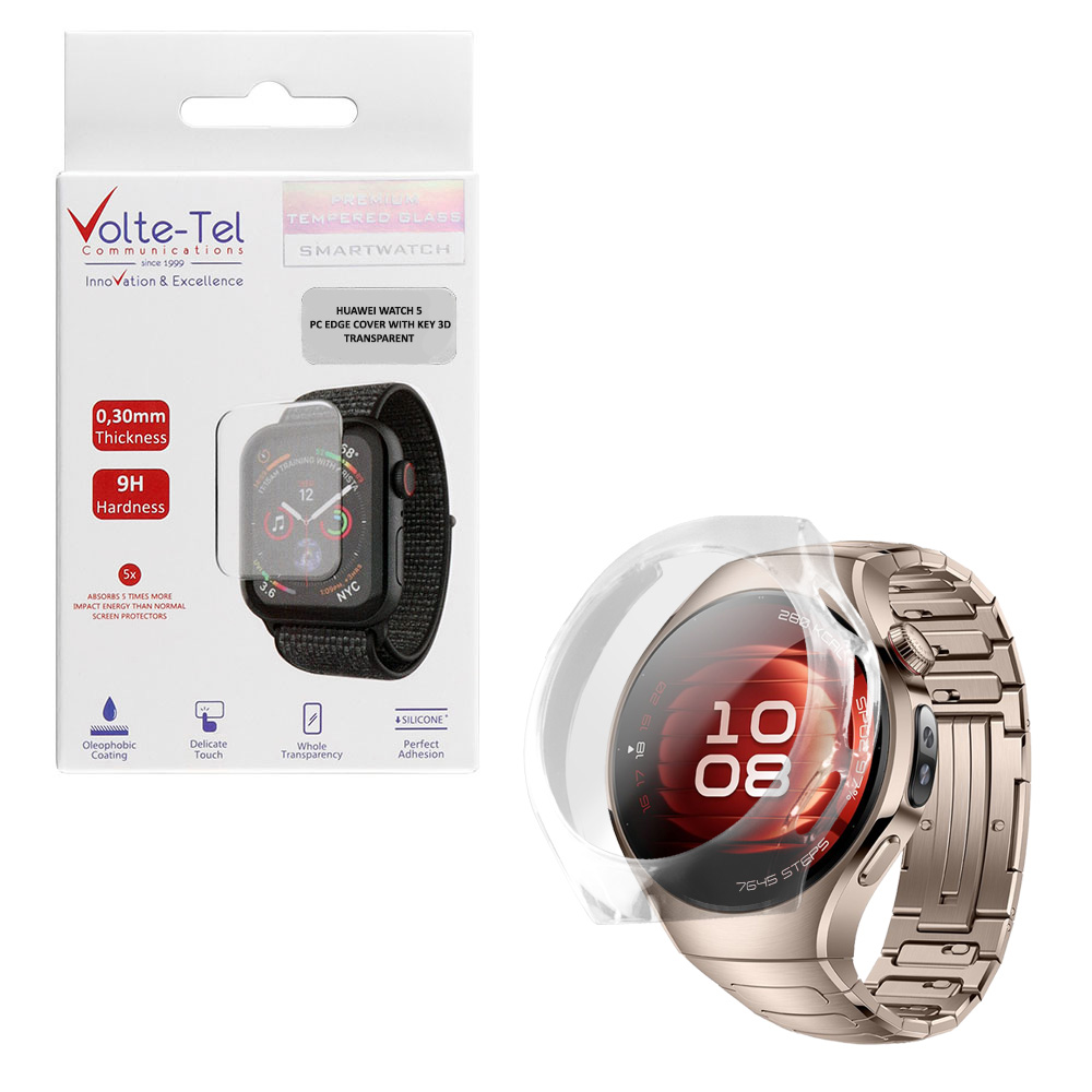 VOLTE-TEL TEMPERED GLASS HUAWEI WATCH 5 46mm 1.5" 9H 0.30mm PC EDGE COVER WITH KEY 3D FULL GLUE FULL COVER TRANSPARENT