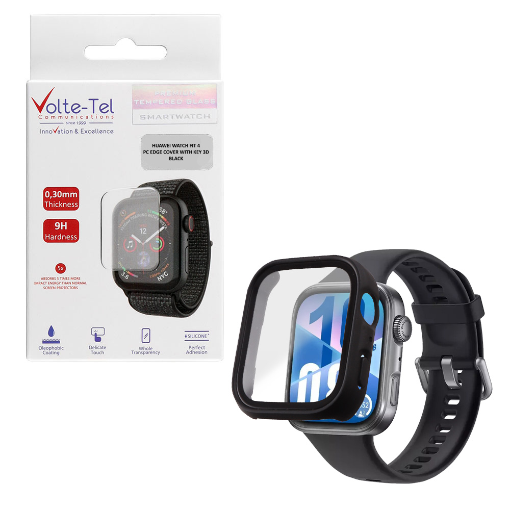 VOLTE-TEL TEMPERED GLASS HUAWEI WATCH FIT 4 1.82" 9H 0.30mm PC EDGE COVER WITH KEY 3D FULL GLUE FULL COVER BLACK